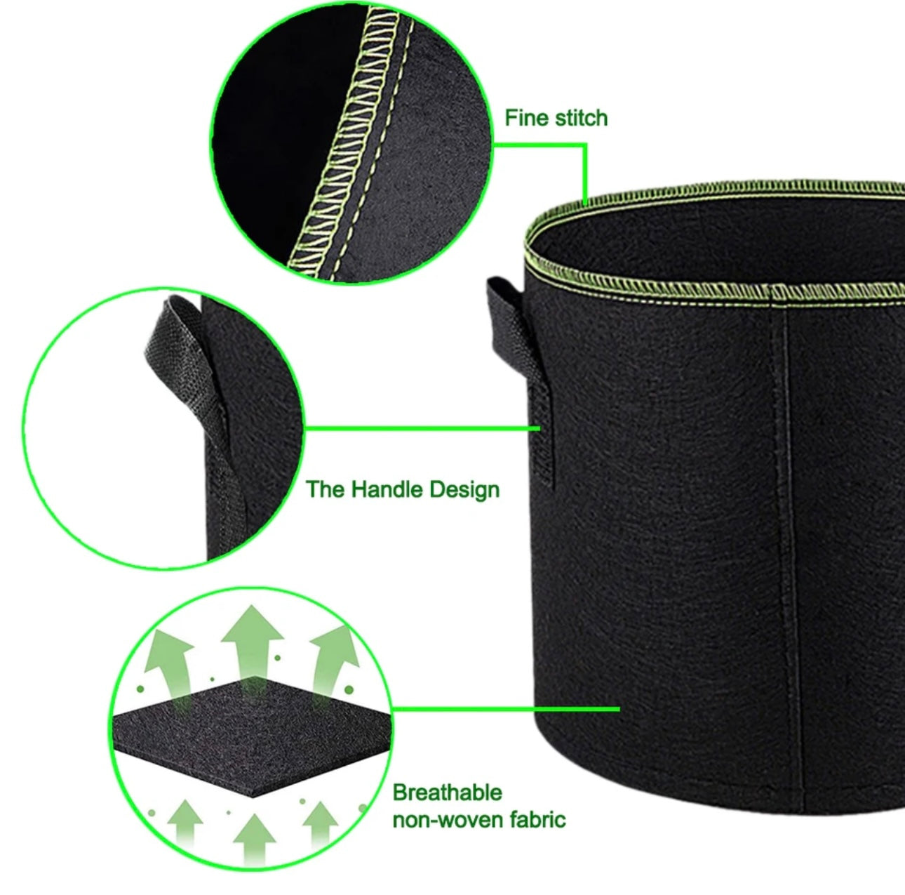 3 Stück 7,5 Liter Stofftopf: Diese atmungsaktiven Stofftöpfe bieten deinen Pflanzen eine hervorragende Drainage und Belüftung. Sie fördern das Wurzelwachstum und verhindern Wurzelkrankheiten, sodass deine Pflanzen stark und gesund bleiben. 3 Töpfe a 7,5 Liter sind ideal, um in deiner Growbox 3 mittelgroße Pflanzen zu züchten.