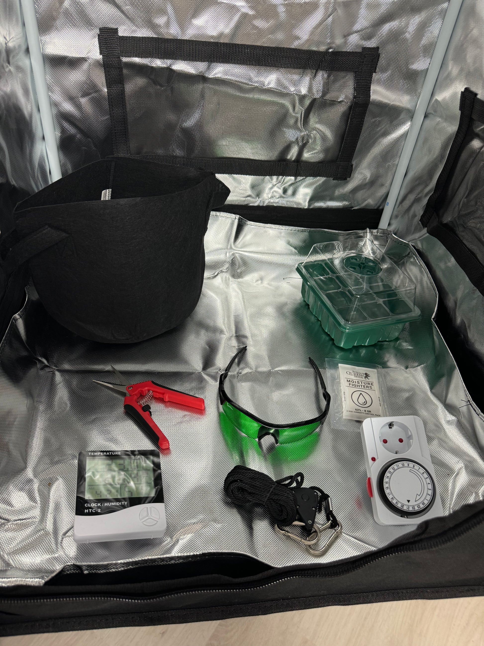 Thermo-Hygrometer: Unser digitaler Thermo-Hygrometer ermöglicht eine präzise Kontrolle der Temperatur und Luftfeuchtigkeit in der Growbox. Es sorgt dafür, dass deine Pflanzen immer in einem optimalen Temperaturbereich wachsen.