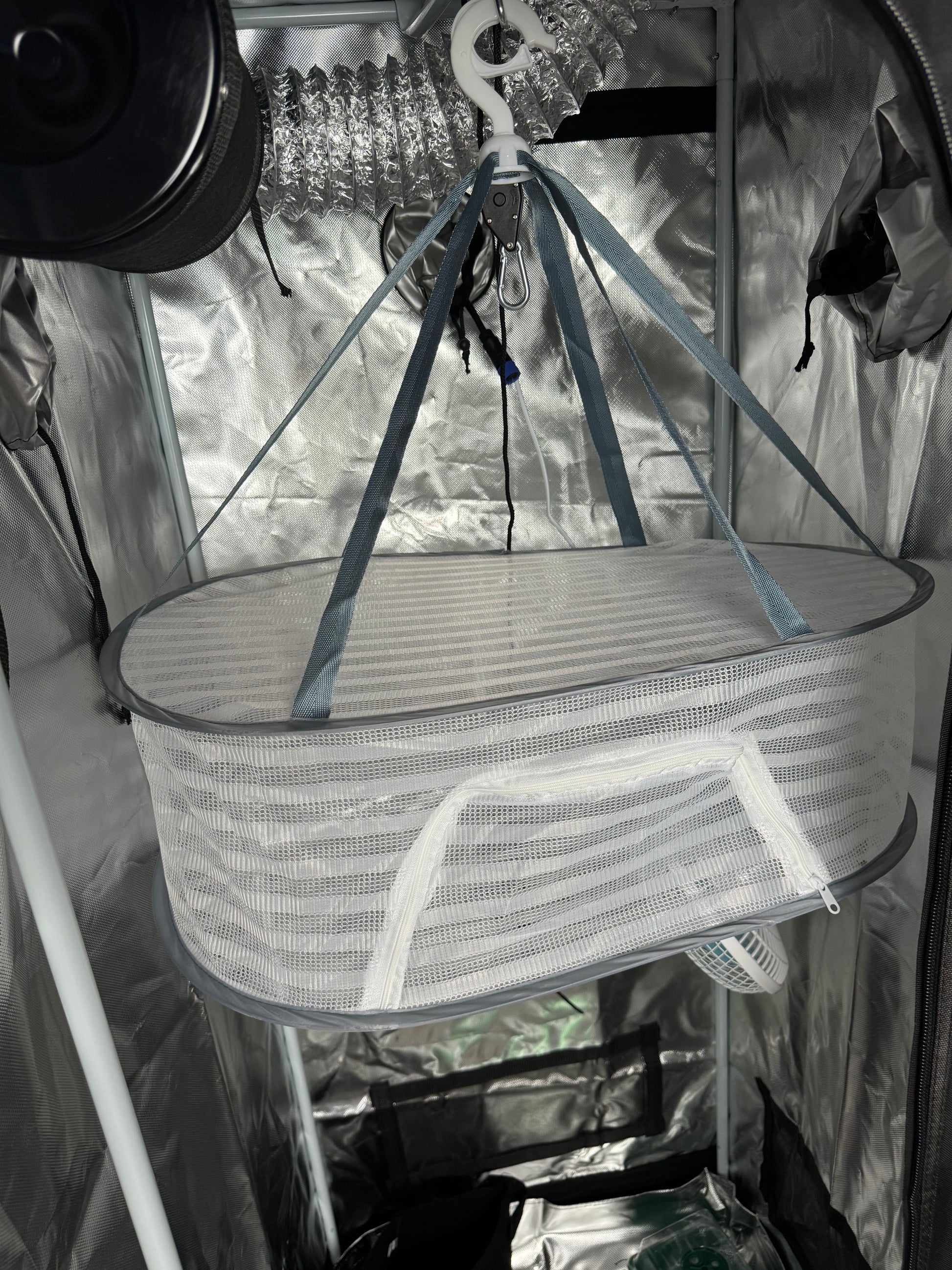 Trockennetz für deine Ernte: Das Trockennetz ist eine optimale Lösung, um deine geernteten Pflanzen schonend zu trocknen. Es sorgt für eine gleichmäßige Luftzirkulation und verhindert Schimmelbildung, dadurch bleibt die Qualität deiner Ernte hoch.